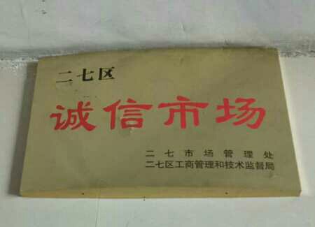 近日,在二七区市场管理处与工商管理和技术监督局联合开展的“二七区诚信示范市场”评选活动中,亚星茶城从众多参选市场中脱颖而出,荣获“诚信市场”称号。